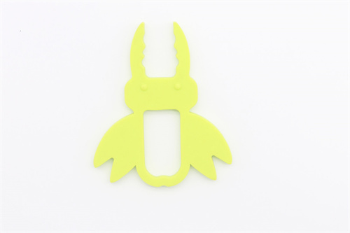 鍬甲蟲牙膠以動物形式結合嬰幼兒磨牙棒達到一定的造型美觀度,可提升兒童對磨牙練齒起到了良好的關鍵性作用,材料中間不中空形式,可隨時起到拿取功能與美觀實用功能,其次材料柔軟不會的嬰幼兒造成危害,對各項美觀度