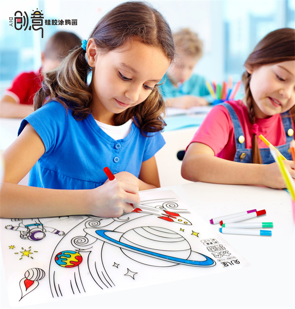 硅膠涂鴉畫主要采用兒童教育方式提升兒童動(dòng)手能力,以及親子教育知識(shí)學(xué)習(xí)等效果,培養(yǎng)兒童的認(rèn)知以及專注力以及藝術(shù)創(chuàng)造能力等,產(chǎn)品主要采用環(huán)保硅膠片結(jié)合轉(zhuǎn)印印刷底色方式提供一定的表面圖案知識(shí),經(jīng)過水性水彩筆涂鴉達(dá)到創(chuàng)作的效果!